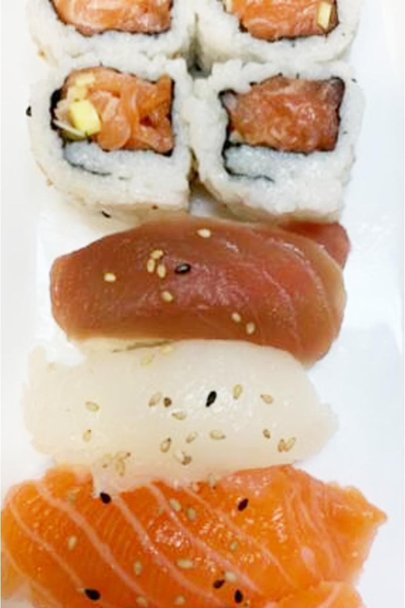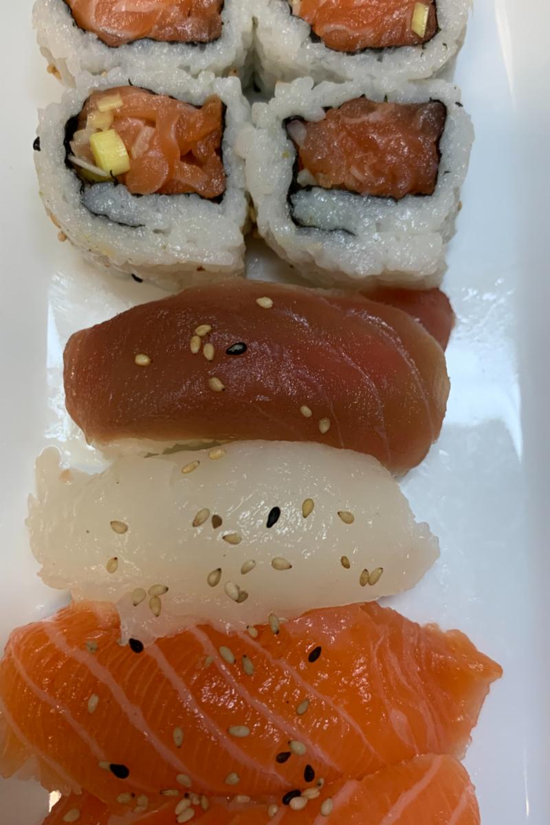 2 laks, 1 kveite, 1 tunfisk og 8 laks maki (Sesamfrø)